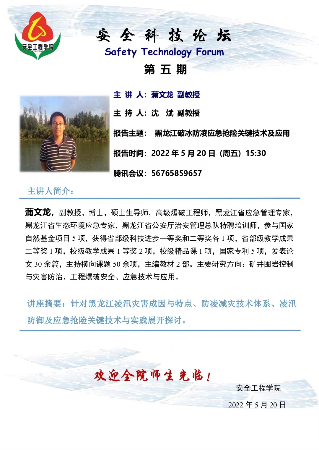 安全科技论坛第五期 主讲人 蒲文龙副教授