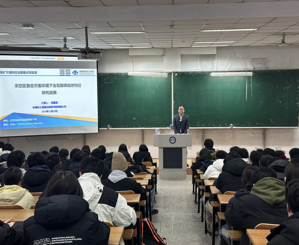 交流会上,田富超作了题为《采空区复合灾害环境下含瓦斯煤自燃特征研究进展》的学术讲座。他结合国内外瓦斯与火耦合灾害研究背景,围绕耦合试验台研制及实验测试、介绍了现阶段在瓦斯与火耦合方向取得的研究成果、以及展望瓦斯与火耦合未来发展方向。此外,他还与学生就报考煤科总院研究生相关事宜进行了交流。
