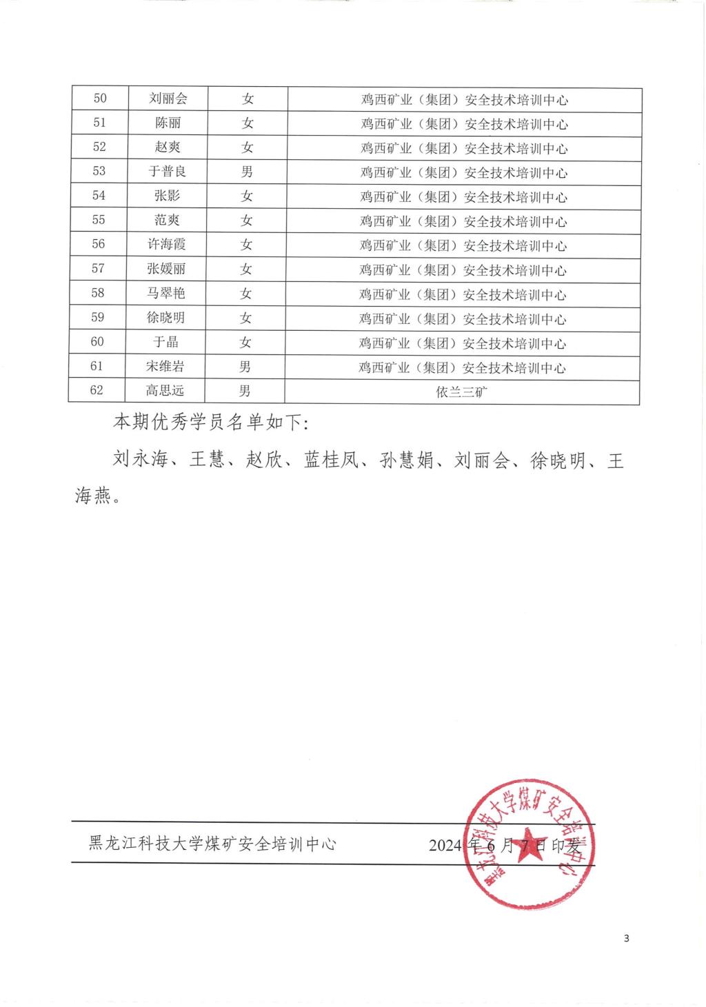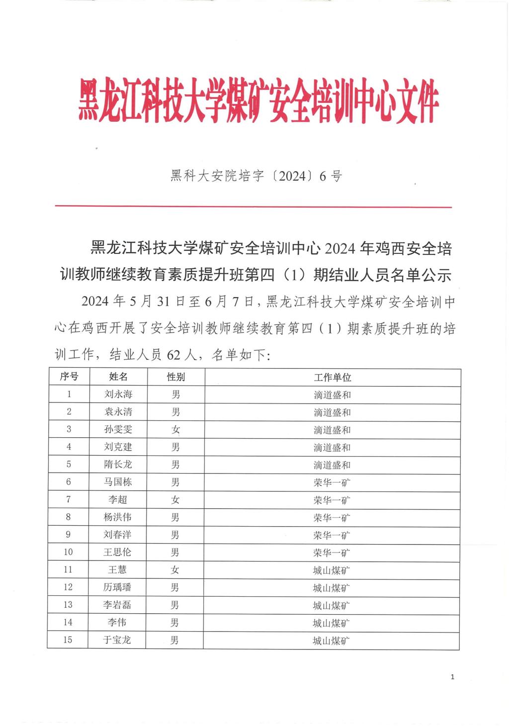 2024年鸡西安全培训教师继续教育素质提升班第四(1)期结业人员名单公示