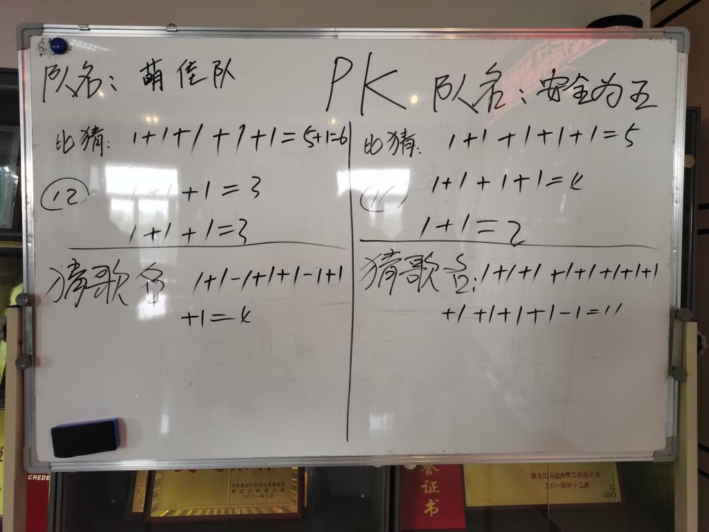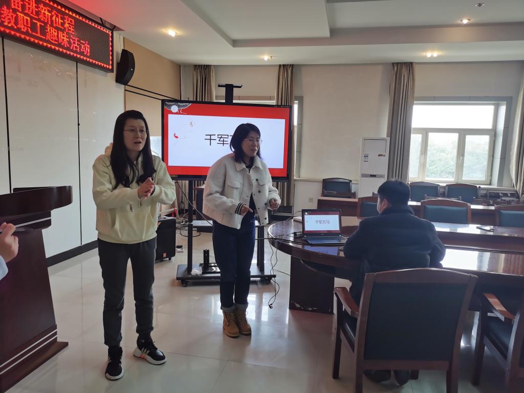 现场教职工自由组成两队,分别为“萌佳队”和“安全为王队”,两队经过现场“你比划我猜”“猜歌名”等游戏环节进行比拼,在激烈的角逐中,“安全为王队”最终以高出对方队伍6分的优异成绩获胜,活动以“萌佳队”现场表演歌舞形式,在欢声笑语中缓缓落幕。