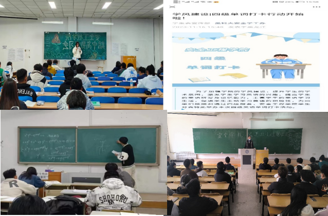 以督导正学风,强化学风建设实效。召开“扬时代新风 树学风新貌”年级大会、“追梦远方 未来可期”主题班会,讲清早、晚自习及课堂要求,端正学生学习态度,提高学生学习积极性;联系任课教师加强课堂管理,增强课堂活跃性,提高学生课堂学习效率;安排学生会学习部和班级学习班长,统计每节课出勤人数(迟到、早退),及时掌握学生动向;举办“KY开元集团官网期中复习会”、“四级单词打卡行动”等活动,构建朋辈互助“学习共同体”;组织班主任深入班级随机听课,掌握本班学生的上课状态,对存在问题的学生及时教育引导。全面提高上课“出勤率”、“抬头率”及“前排就坐率”。