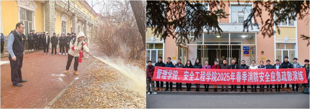 聚焦实战演练,提升应急能力。学院通过多层次、多形式的消防安全培训与演练活动,全面提升师生消防安全素养。3月26日,学院邀请黑龙江省智远行消防技术有限公司开展消防安全培训及火灾逃生、灭火实操演练,帮助师生掌握灭火器使用方法,进一步提升应急处置能力。3月28日,学院联合管理学院开展消防安全应急疏散演练,模拟学生公寓火灾场景,筑牢学生安全思想防线,增强消防安全意识和自救互救能力。4月3日,学院与哈尔滨消防支队轨道交通大队联合举办“消防进校园活动”及消防安全海报设计大赛,活动以消防公开课的形式让师生学习消防安全知识,以海报设计大赛的形式提升师生对消防安全学习的参与度与关注度。学院教师第一党支部、学生第二党支部与哈尔滨消防支队轨道交通大队开展了党建共建活动,旨在聚焦“党建+安全”融合模式,持续提升师生消防安全素养,筑牢校园安全防线。