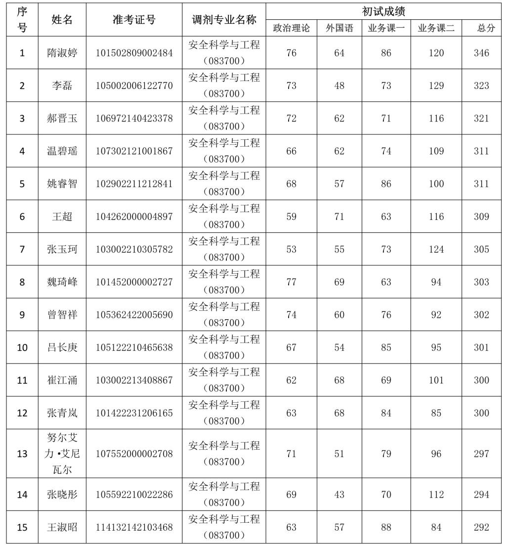 经KY开元集团官网研究生招生工作领导小组审核,以下考生可参加我院安全科学与工程专业调剂复试,名单公示如下: