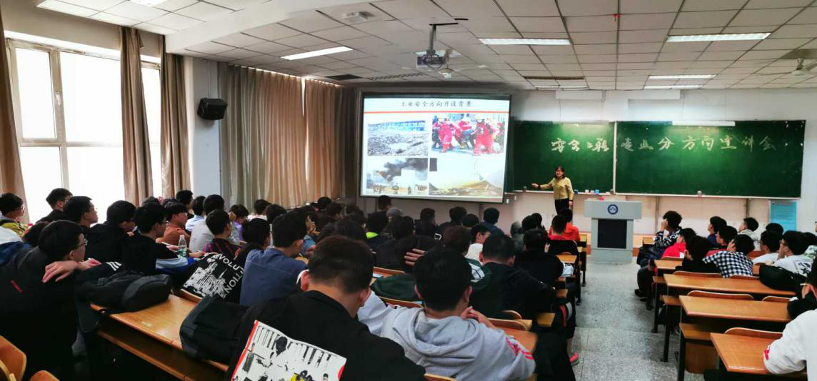 紧接着,工业与消防安全方向负责人魏春荣老师就现代工业安全的发展趋势进行了简单的阐述。她的演讲幽默诙谐,让同学们在相当舒适的环境中解了工业与消防安全这一专业的学习内容、就业环境以及薪资待遇等同学们关心的问题。她特别强调了“安全人”这一概念,用自己独特的方式介绍了作为一个“安全人”所需要掌握的知识、技能以及基本素养。大幅度加强了同学们的社会责任感和工作自豪感。
