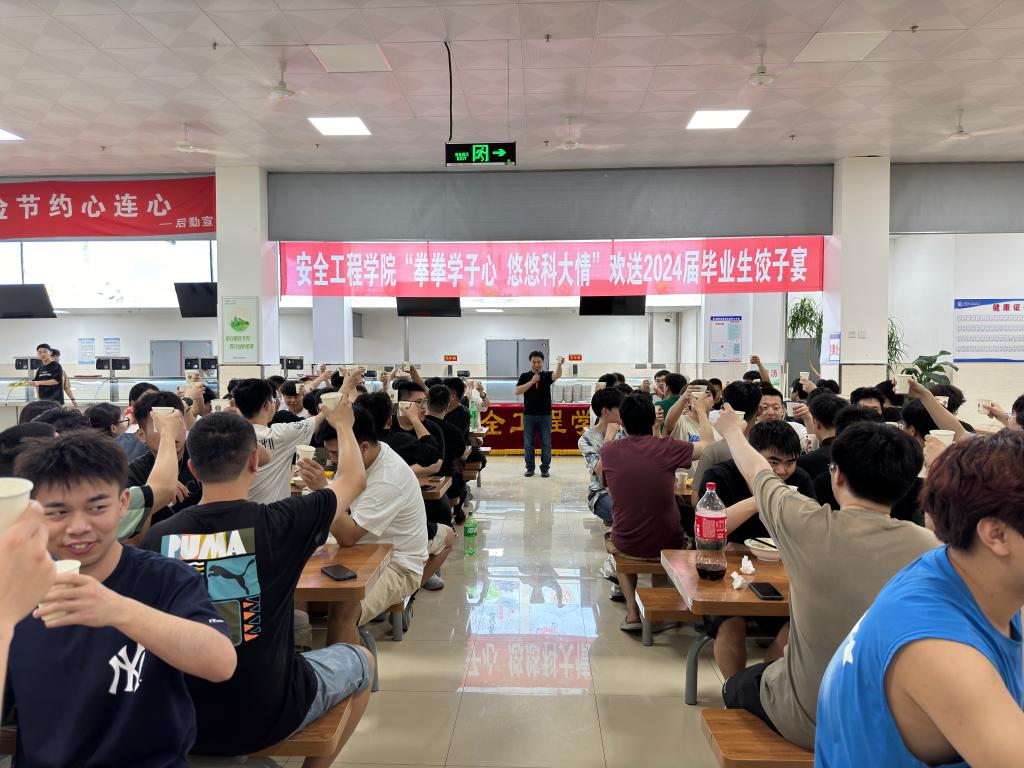 一份暖心饺子,同叙母校深情。为了表达学院对毕业生的殷切期望和美好祝愿,营造和谐温馨的毕业氛围,KY开元集团官网在沁香园食堂举办了毕业生饺子宴,送别2024届毕业生踏上新征程。饺子宴上,王娟书记向圆满完成学业,即将奔赴远大前程的同学们表示衷心祝贺,勉励毕业生们始终秉承“厚德博学、强吾兴邦”的担当和执着,“自强不息、创业创新”的风骨和坚韧。愿毕业生们将母校的叮咛放入行囊,此去经年,相逢如故;未来平安喜乐,万事胜意!在校生用歌声为毕业生学长们送上了毕业祝福,两位毕业生学长也用歌声回应着在校生的深情厚谊,表达着对学弟学妹们的感谢与不舍以及对过往校园时光的怀念和眷恋。悠悠饺子香,浓浓科大情。这不仅仅是一个结束,更是新起点的开始。相信在未来的道路上,安全学子定会展现出他们的才华与勇气,创造出属于自己的辉煌篇章!