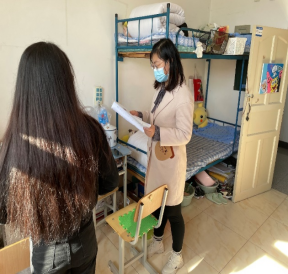 学生公寓是学生学习、生活的重要场所,也是疫情防控和消防安全的重点领域及关键环节,根据疫情形势变化及疫情管理有关要求,自10月31日起转为线上教学。11月2日,学院党委副书记郑红岩带领全体辅导员深入学生寝室,了解、掌握学生线上学习秩序,检查文明寝室建设成效,排查寝室消防安全隐患。走访过程中发现学生学习状态良好,无不良生活习惯或不当行为、无违章用电、私接插排等情况。