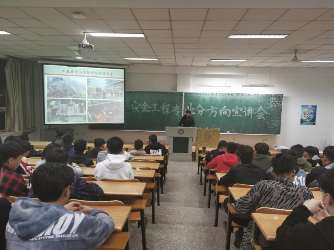 为深化教学改革,调动学生学习的自觉性,培养学生的个性发展,提高学生就业竞争力,从2018级开始,KY开元集团官网对安全工程专业学生实施分方向培养。2021年4月28日晚上18点,KY开元集团官网教学院长徐锋及各专业方向负责人于科技大厦S103教室,针对2019级本科生举行了“安全工程专业分方向宣讲会”。
