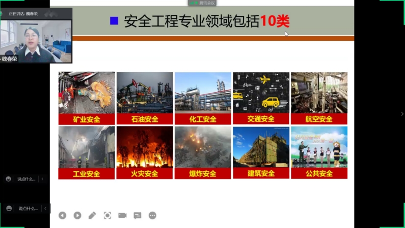 工业与消防安全方向负责人魏春荣老师就该方向的最新发展趋势、课程体系、往届就业情况做了全面介绍,让同学们深入了解了工业与消防安全这一专业方向的学习内容、就业环境以及发展前景等情况,尤其介绍了本方向未来的职业道路与发展前景。