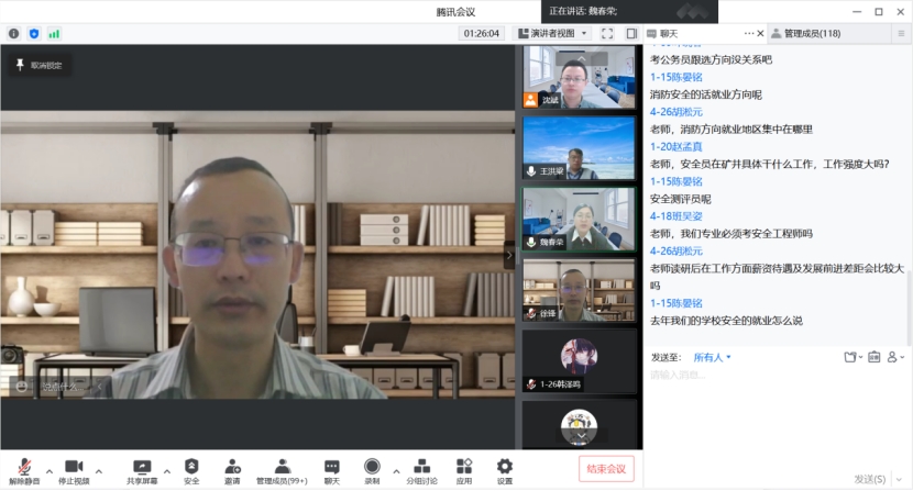 最后,由安全工程系主任沈斌主持答疑,与会老师对同学们提出的疑问进行了详细解答。
