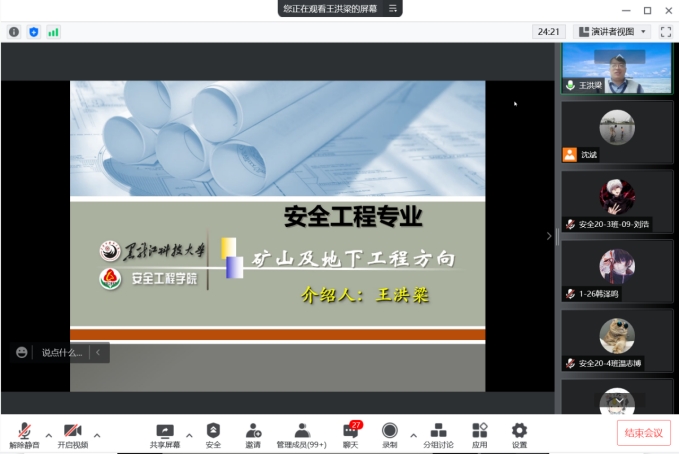 随后,矿山及地下空间安全方向的负责人王洪粱老师从同学们关心的行业发展趋势、安全状况和薪资待遇等方面作了详细介绍。王老师拥有非常丰富的教学经验以及科研工作经验,他的精彩宣讲为大家展现了一个和以往完全不一样的新领域,让大家了解到什么是智能矿山,什么是现代城市地下空间工程,让同学们了解了这个方向的前景,增强了大家学习的兴趣。