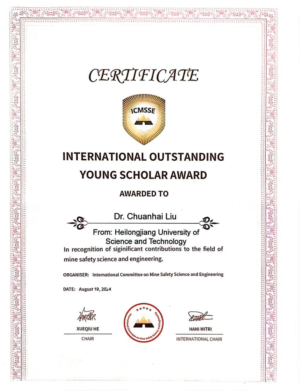 会议期间,来自中国、美国、澳大利亚、俄罗斯、加拿大、波兰等10余个国家140余位代表就矿山安全科学与工程及相关领域的新理论、新技术、新装备、新方法等开展学术交流。KY官网KY开元集团官网刘传海、李元吉和矿业工程学院刘刚三位教师分别进行了学术报告,并同与会专家、学者开展了学术交流与讨论,引起了与会代表的高度关注和积极反响。KY开元集团官网教师刘传海获得了“国际矿山安全科学与工程卓越青年学者”称号。