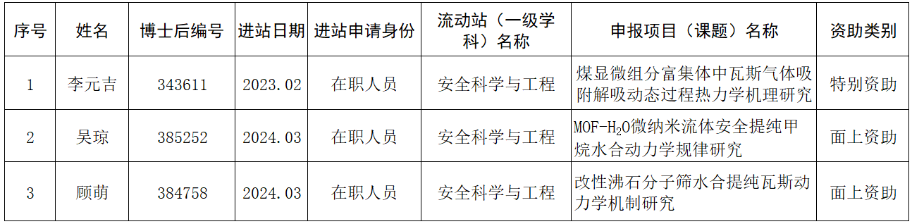 依据黑龙江省人力资源和社会保障厅下发的《关于开展2024年度黑龙江省博士后资助工作的通知》工作要求,安全科学与工程博士后科研流动站组织开展相关工作。经个人申报、形式审查、专家审核,决定推荐以下项目至省人保厅参加评审,具体名单如下: